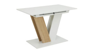 ausziehbarer V-förmiger Säulentisch mit verstaubarer Einlegeplatte