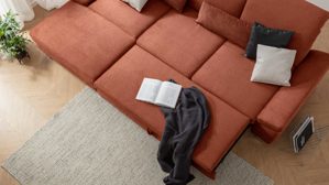 die Liegefläche wird ohne Aufpreis im gleichen Stoff wie das Sofa bezogen