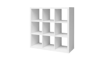 Das Standregal besticht mit einer mattierten Oberfläche in Weiß, die hervorragend Ihre Einrichtung komplettiert. Auch als Büromöbel einsetzbar, stellen Sie den Raumteiler neben den Schreibtisch und sortieren Ihre Ordner in die insgesamt neun Fächer. Das Modell ist ca. 112 x 112 x 38 cm (BxHxT) groß und hat eine Bodenstärke von ca. 16 mm.