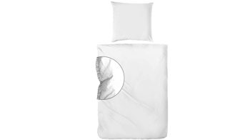 Das weiße Bettwäsche-Set aus Renforce-Baumwolle kommt in Stone Washed-Optik daher. Das mittelfeine strapazierfähige Gewebe der Heimtextilien verfügt über eine ausgesprochen angenehme Haptik. Die temperaturausgleichende Wirkung ist ein weiterer Pluspunkt dieser schlichten Bettwäsche. Der weiche, angenehme Griff wird ergänzt durch eine glatte Oberfläche beider Wäschestücke.