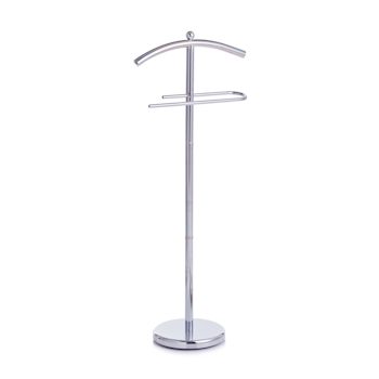 Dieser edle Herrendiener aus verchromtem Metall leistet zuverlässige Dienste - schließlich hält er Ihre Hemden, Sackos und noch mehr für Sie knitterfrei bereit. Dank des Bügels sind auch Ihre Krawatte, Hosen und Ihr Gürtel perfekt aufbewahrt.