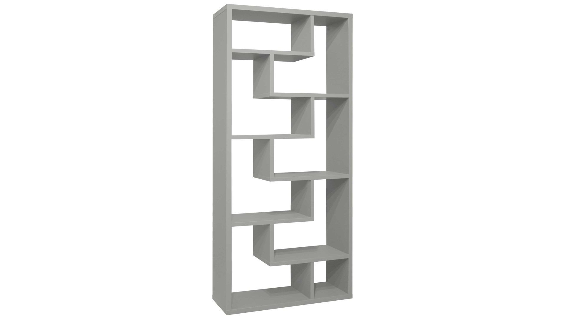 Die kreidegrauen Mattlackoberflächen und die verspielte, aber dennoch harmonische Anordnung der Böden verleihen dem Raumteiler eine sehr moderne und elegante Ausstrahlung. Er bietet Ihnen insgesamt acht Fächer, in denen Sie etwa Bücher und Deko aufbewahren können. Doch auch Aktenordner sind hier gut aufgehoben. Die Maße des Regals belaufen sich auf ca. 90 x 199 x 33 cm (BxHxT).